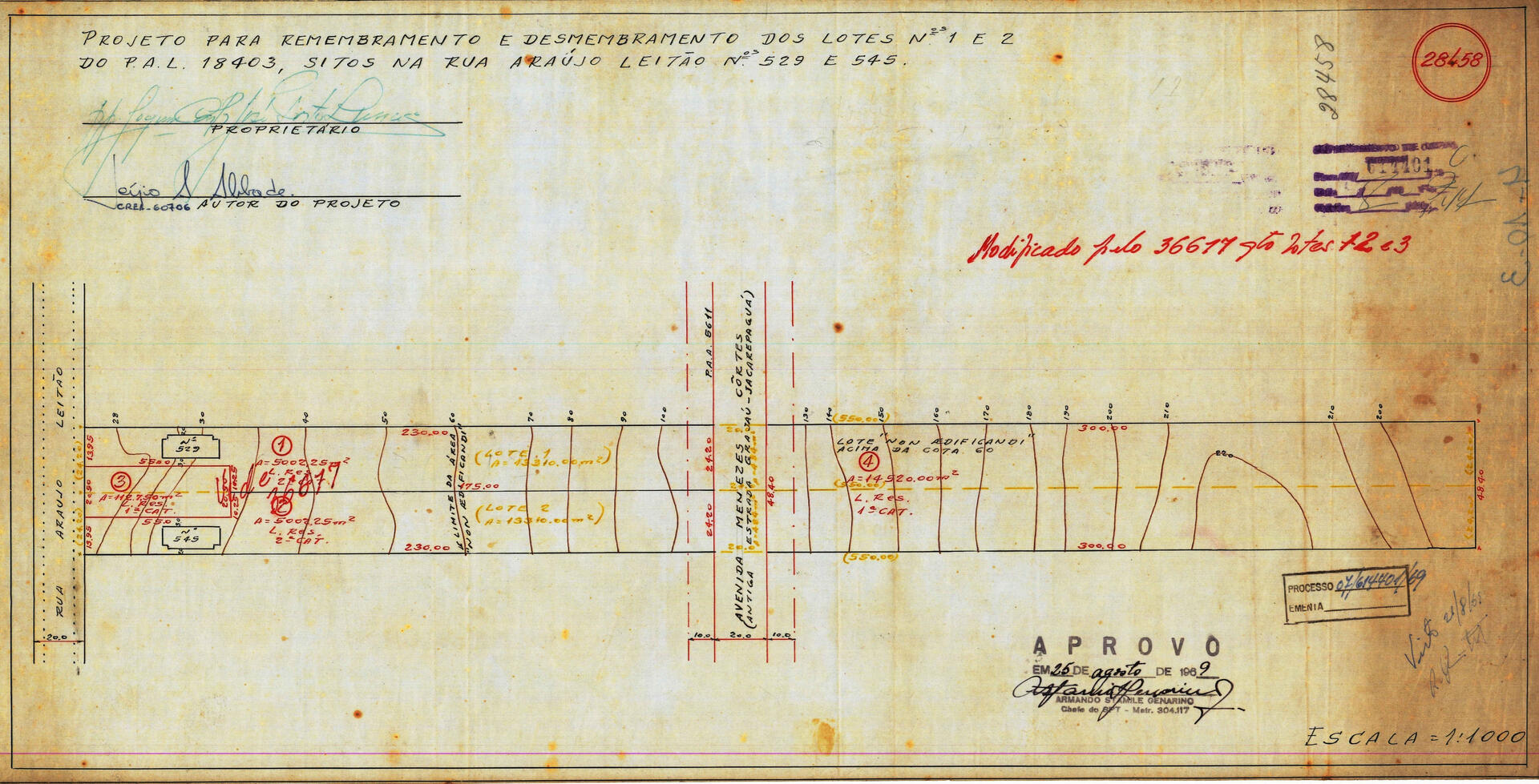 Avenida Menezes Cortes, antiga Grajaú- Jacarepaguá, RJ desmembrado dos prédios 529 e 545, na freguesia do Engenho Novo, medindo 48,40m de frente, pelo alinhamento projetado pelo PAA 5611 para abertura da Avenida Menezes Cortes, antiga Grajaú- Jacarepaguá; 48,40m de fundos, 300,00m de ambos os lados. Da frente à Avenida Menezes Cortes e confronta à direita, esquerda e fundos com terrenos da Cia. Brasileira de Imóveis.